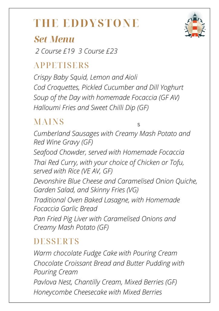 Eddystone Inn Main Menu